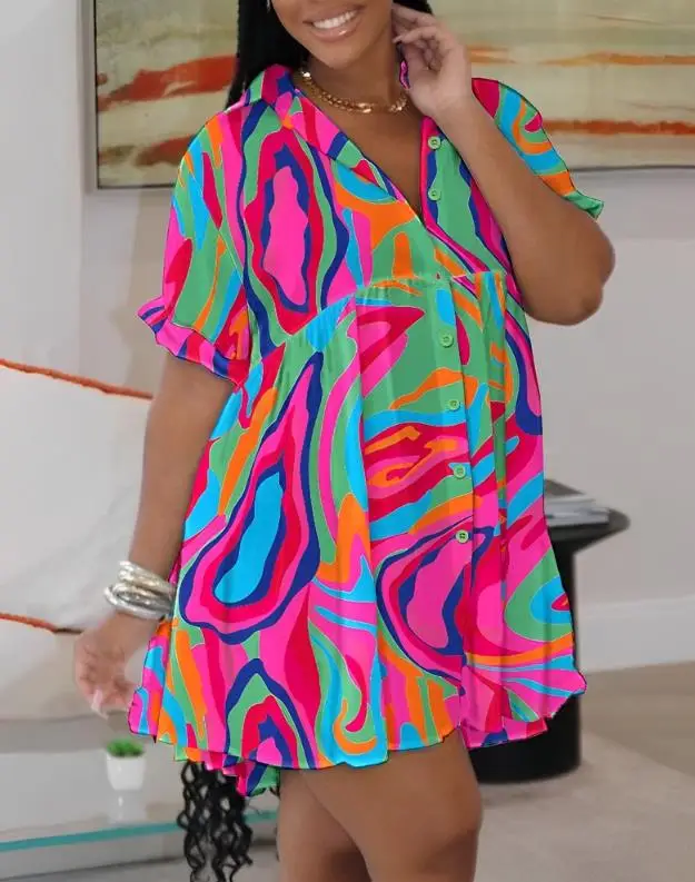 Casual Multi-Color Abstract Ruffles Mini Dress