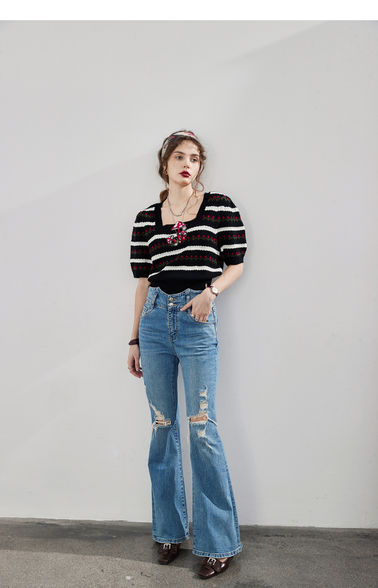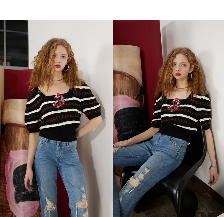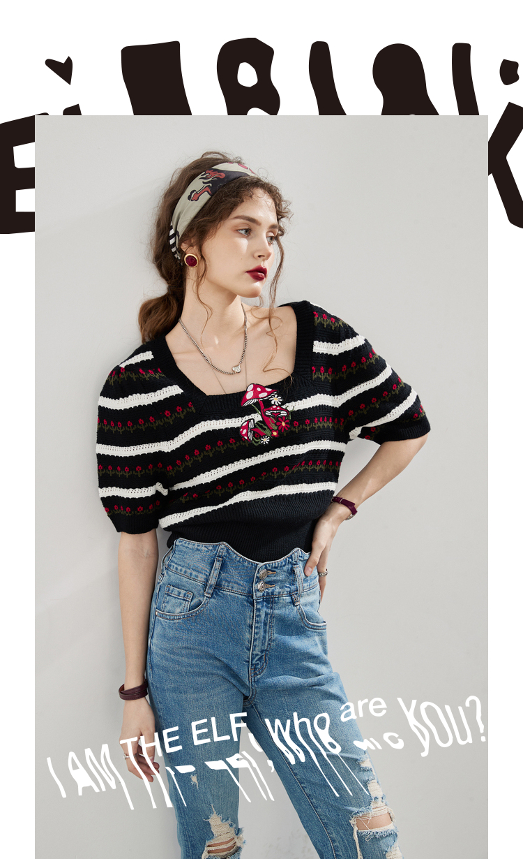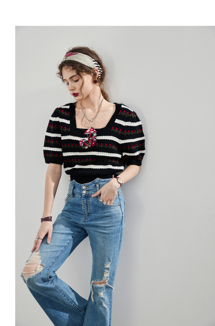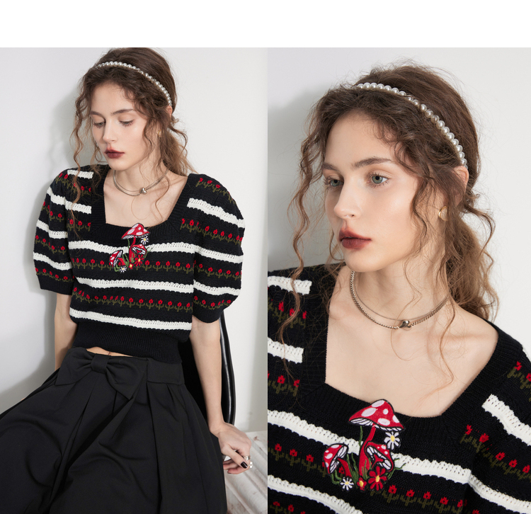 Elf Sack Knitwear Square Collar Slimming Embroidery