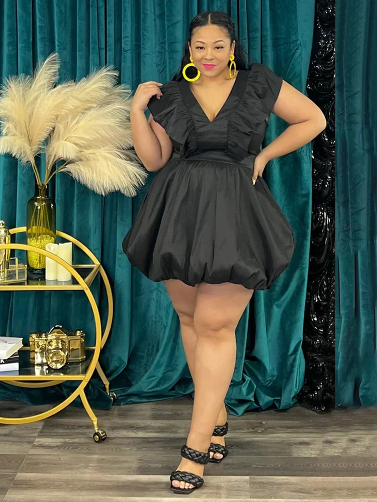 Plus Size Elegant Office Lady Midi Dress Balloon/Bubble Dress