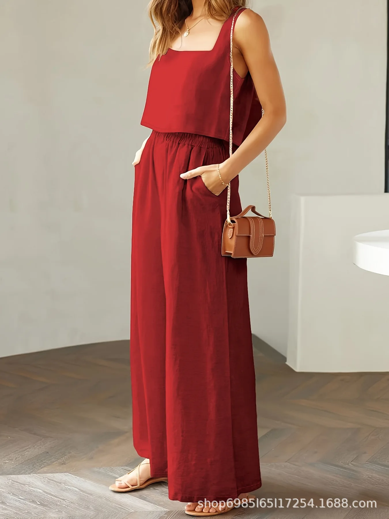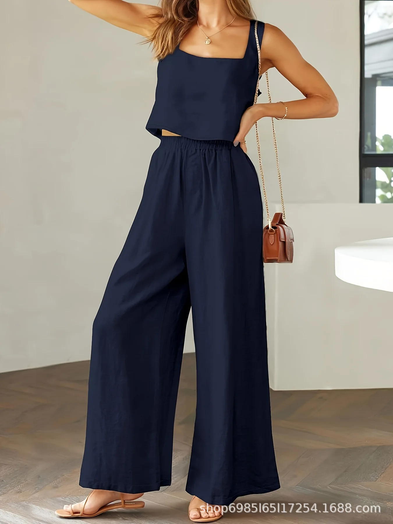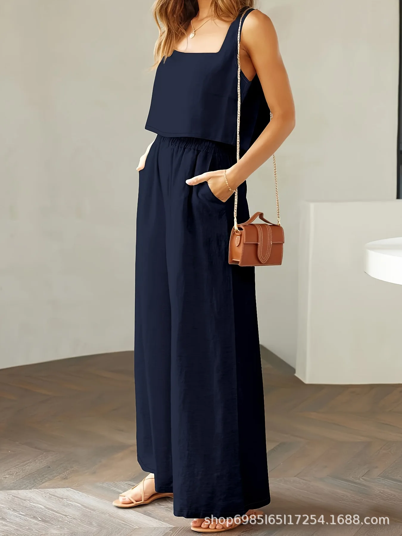 Sleeveless Loose Wide-leg Long Pants Set
