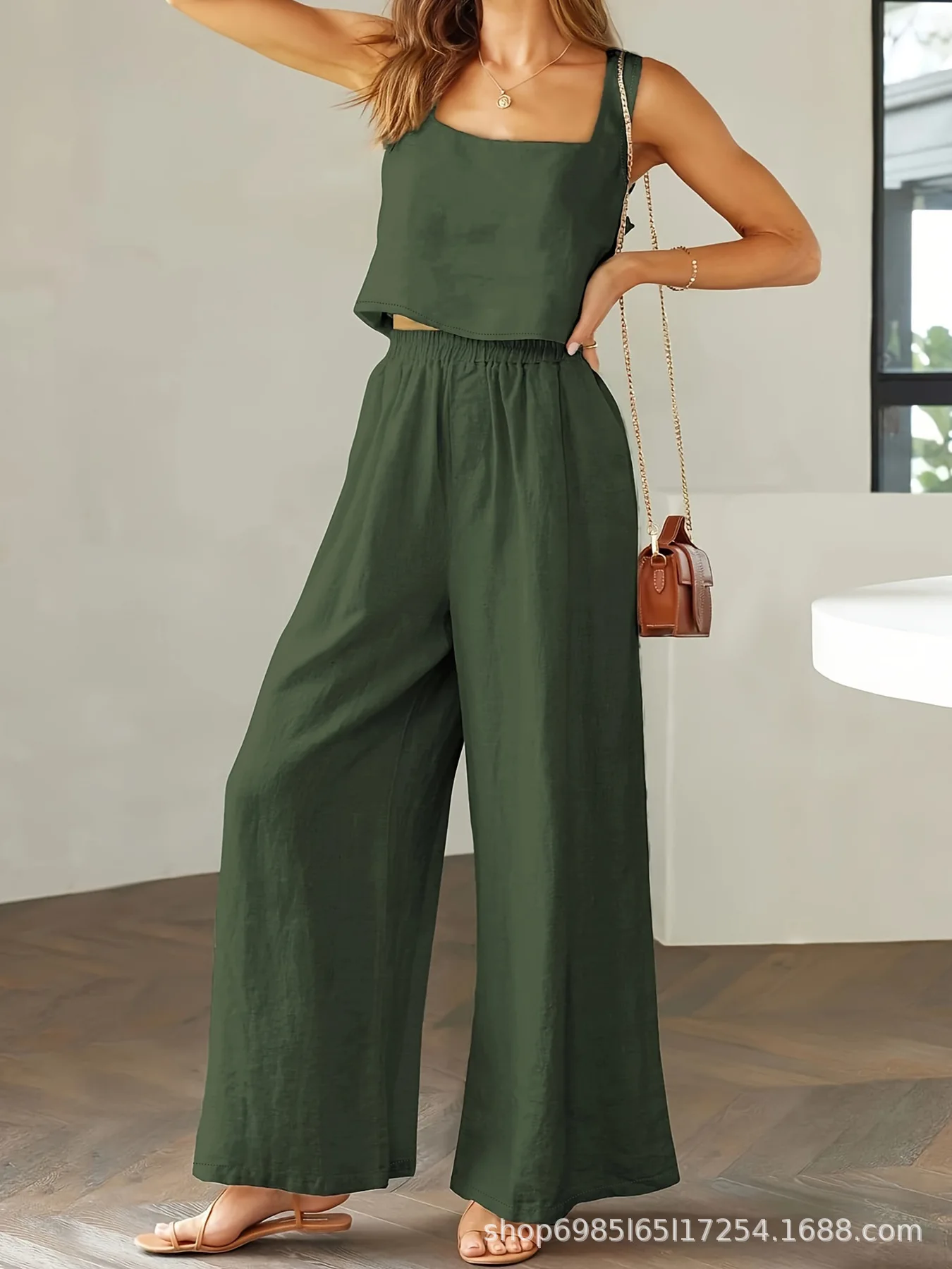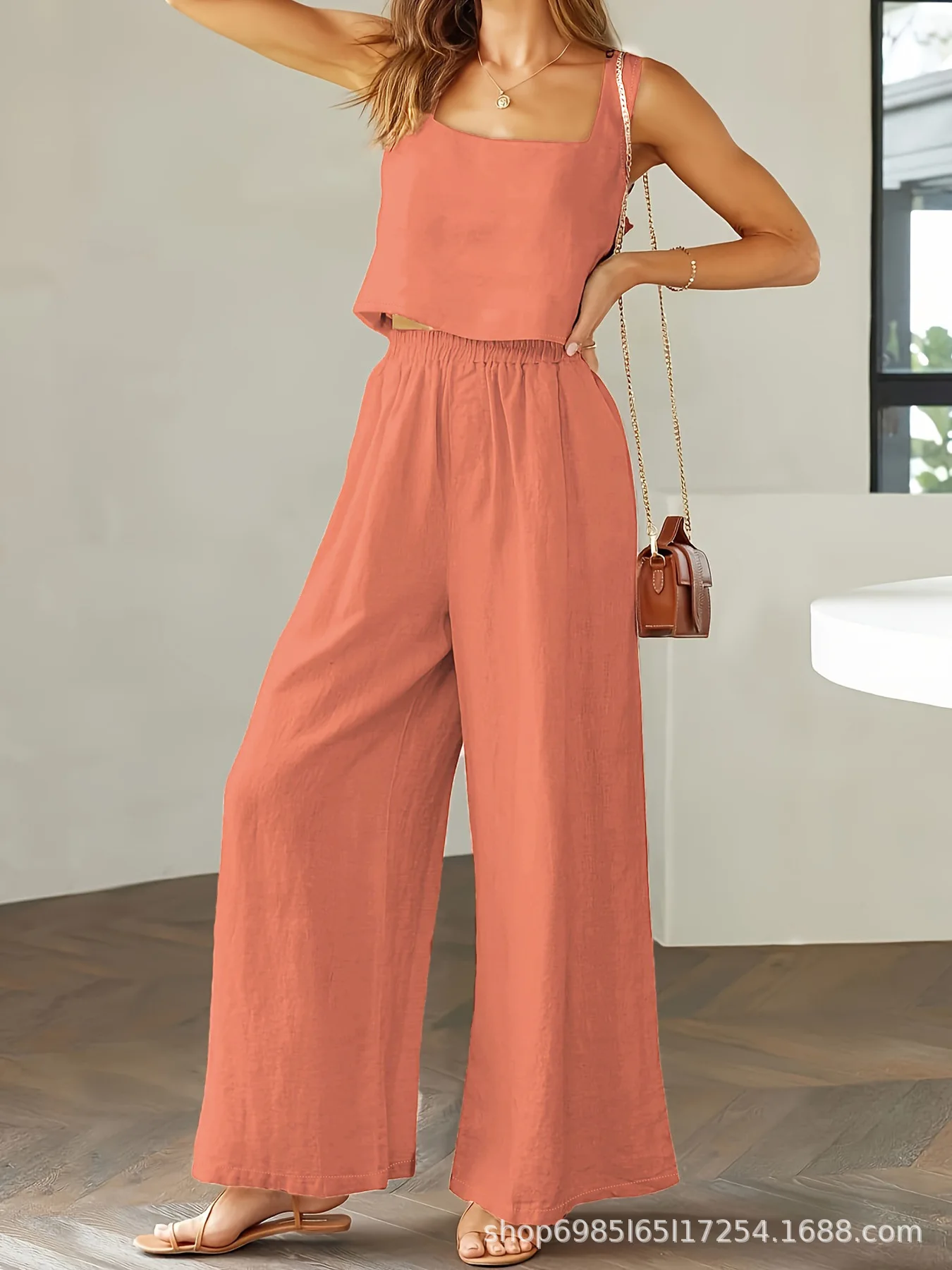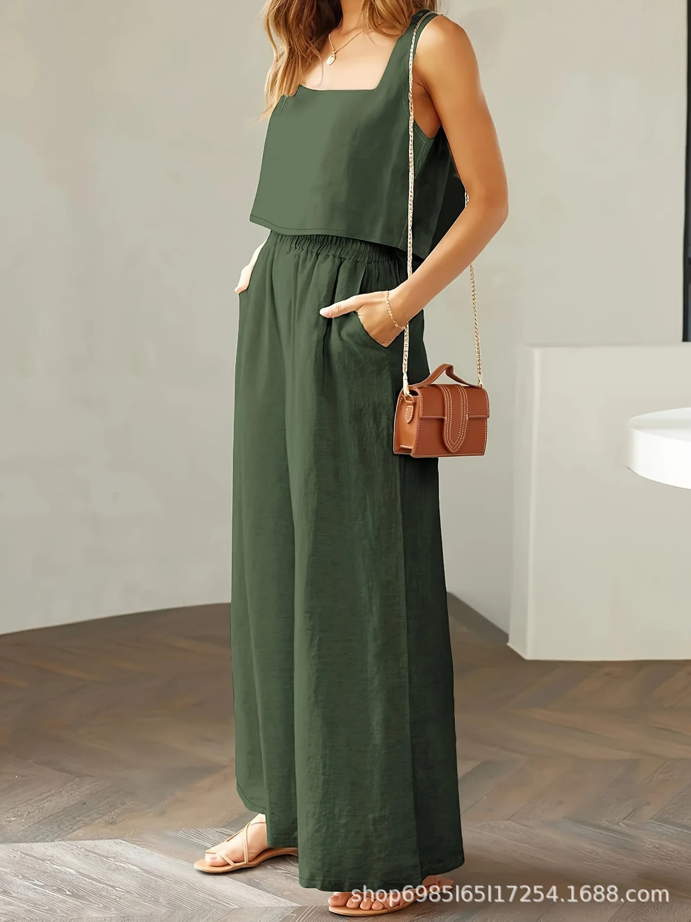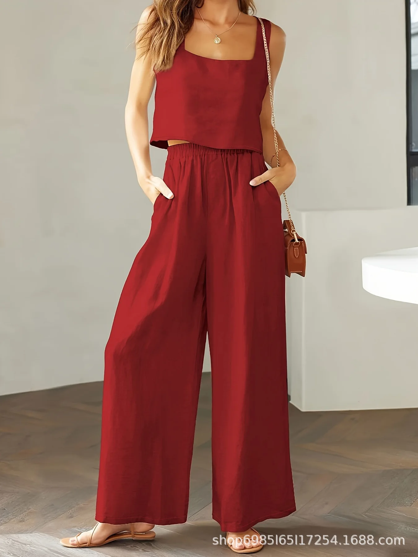 Sleeveless Loose Wide-leg Long Pants Set
