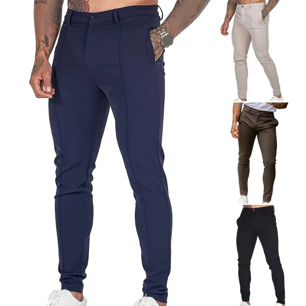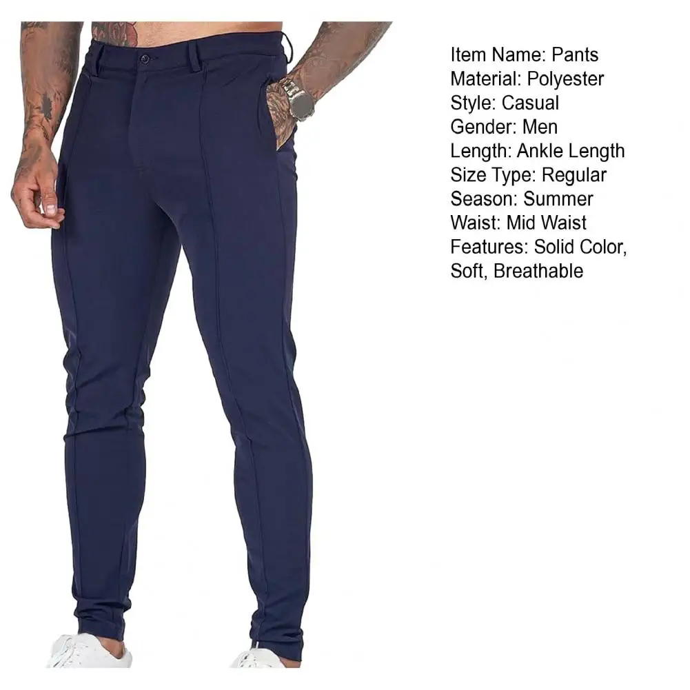 Slim Fit Business Trousers with Ankle Length Slant Pockets for Men