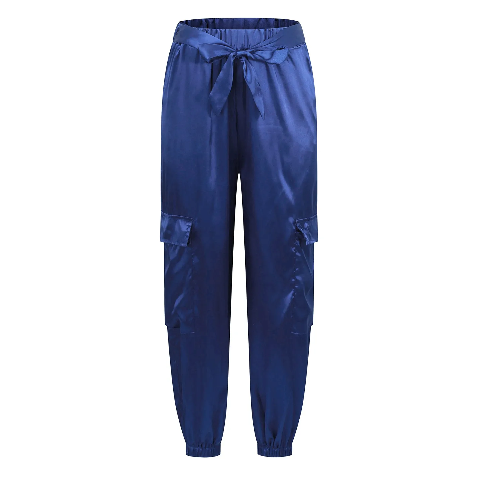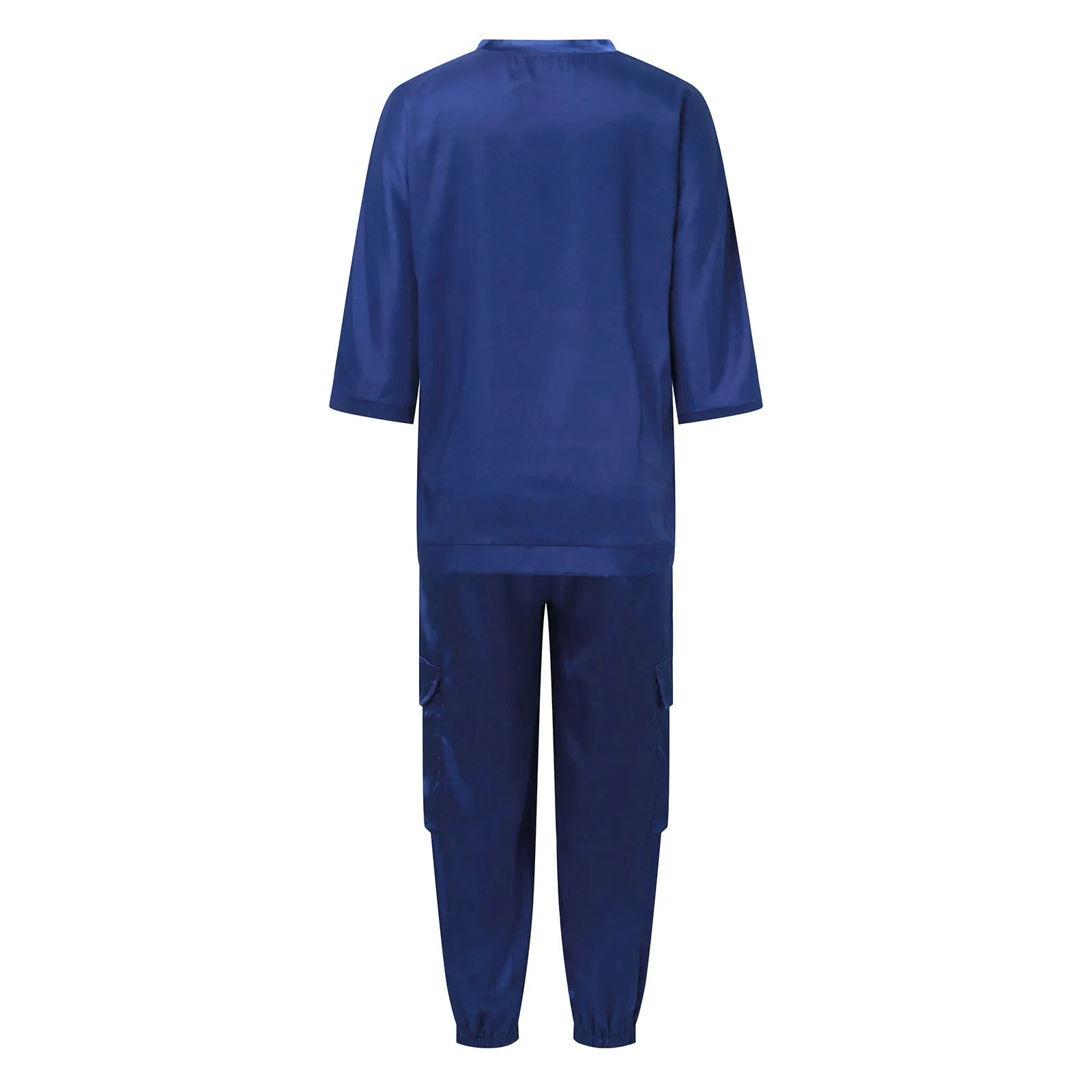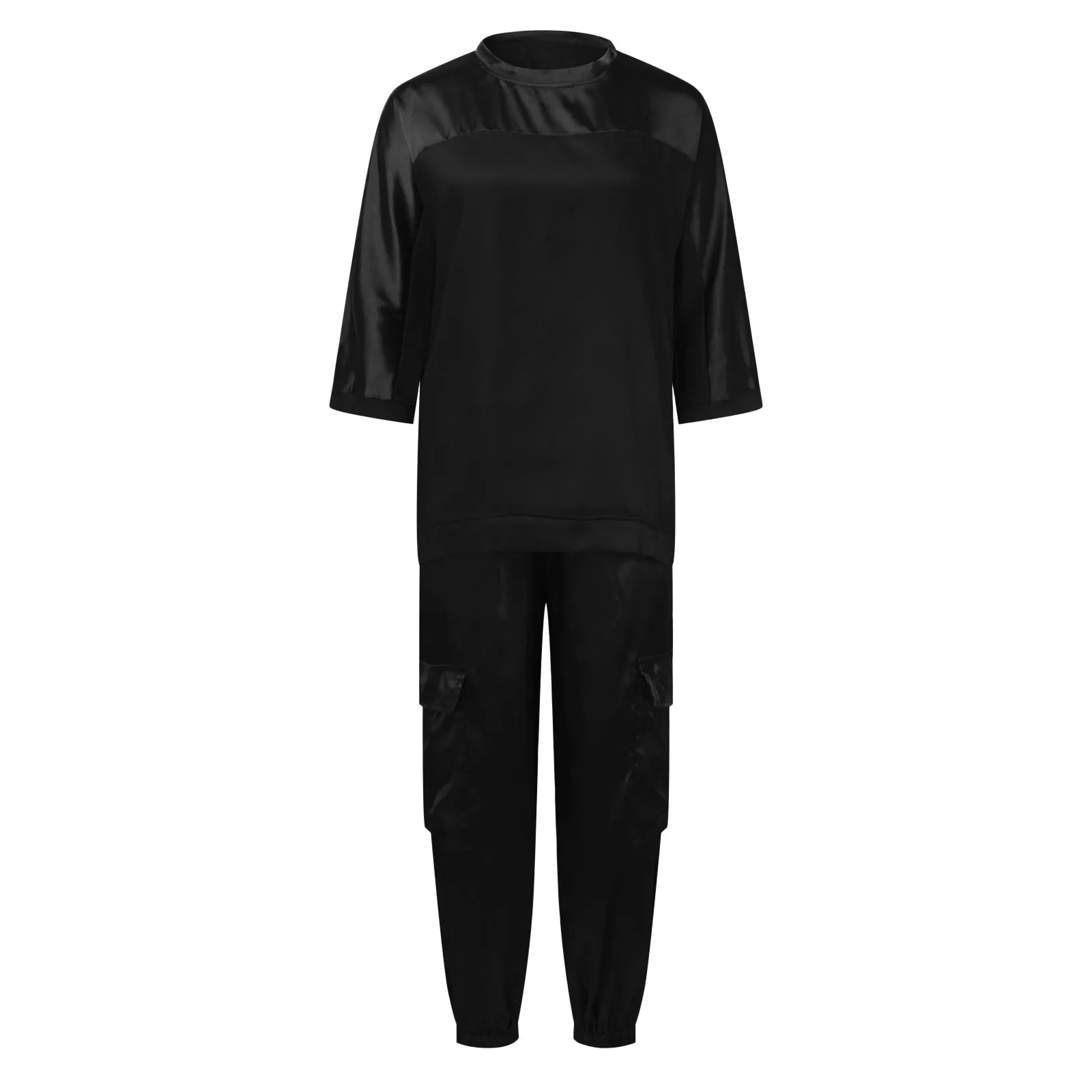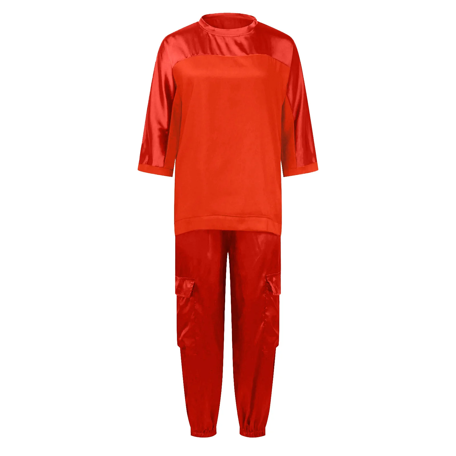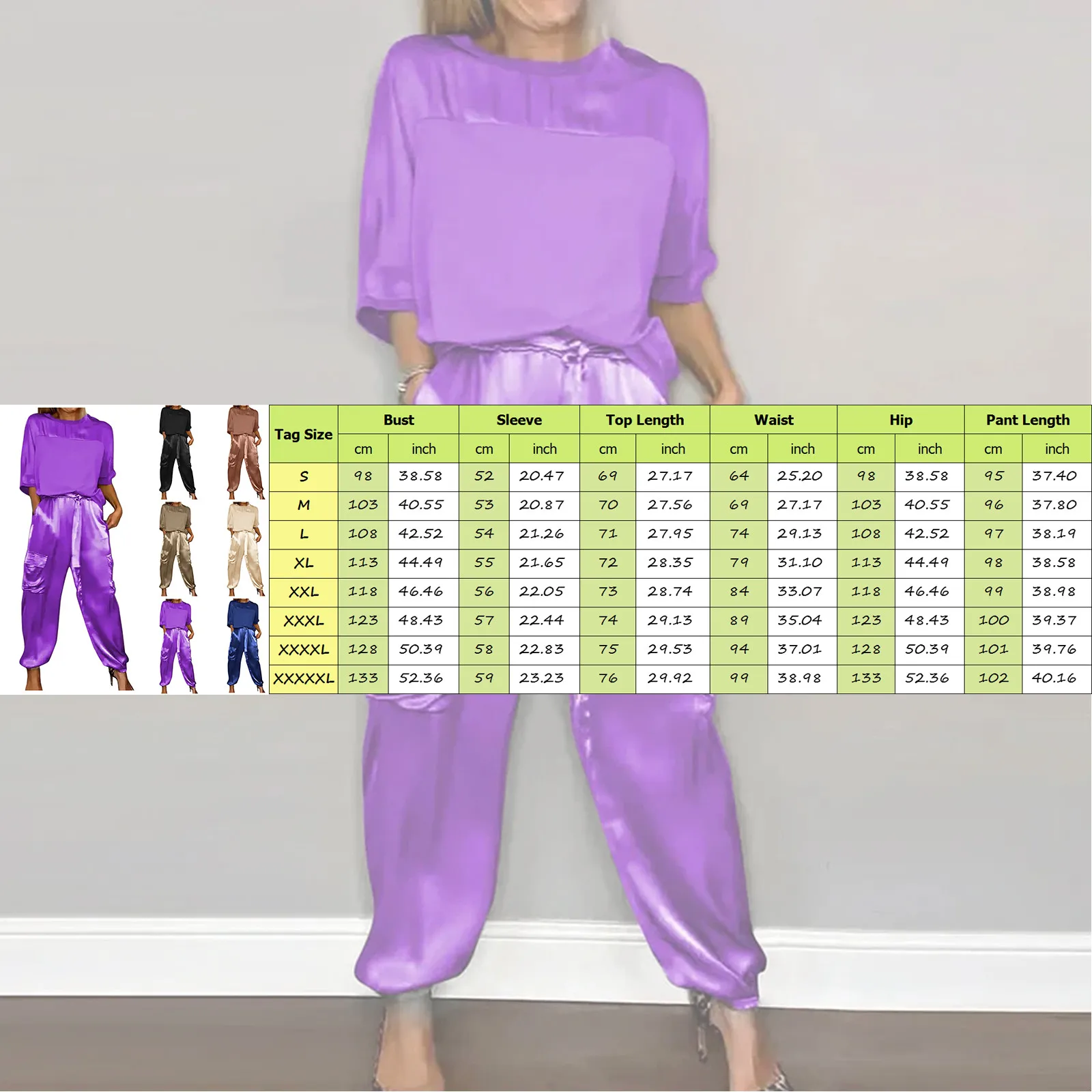 Women's Smooth Satin Short-sleeved Top and Pants Two-piece Set